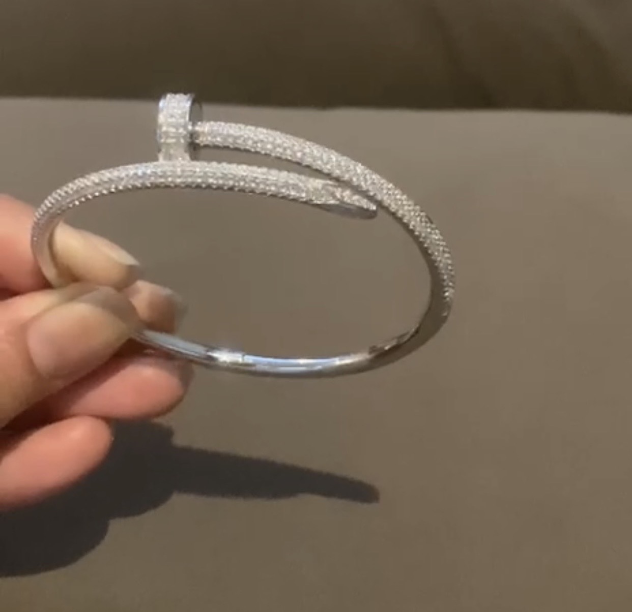 Introducing the AIVA Silver Nail Wrap Bracelet, a bold reinterpretation of contemporary luxury in 925 sterling silver. Designed to mimic the silhouette of a wrapped nail, this bracelet fuses urban edge with timeless sparkle. Its sleek, curved design embraces the wrist with striking precision, while rows of meticulously set cubic zirconia stones add a radiant shimmer to every movement.